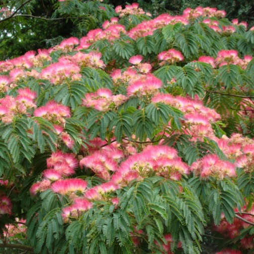 Transformă grădina într-un colț exotic cu spectaculosul arbore de mătase (Albizia julibrissin), un arbore ornamental apreciat pentru coroana sa elegantă și florile delicate, pufoase, în nuanțe de roz. Aspectul său aerisit și frunzișul fin, asemănător ferigii, creează o atmosferă relaxantă și exotică în orice grădină.