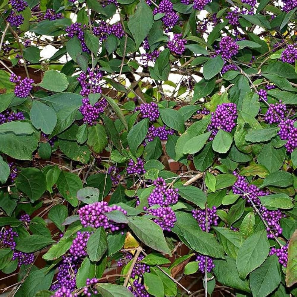 Ramurile sale se împodobesc cu ciorchini bogați de fructe mici, rotunde, într-o nuanță intensă de mov-violet, aproape ireală. Aceste „perle” naturale par a fi așezate cu grijă de-a lungul ramurilor, creând un efect decorativ unic, care atrage imediat privirea. Este una dintre acele plante rare care oferă un impact vizual puternic într-o perioadă în care multe alte specii își pierd farmecul.