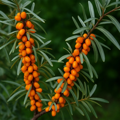 • Fructe: De culoare portocaliu-intens, mici, dispuse dens pe ramuri