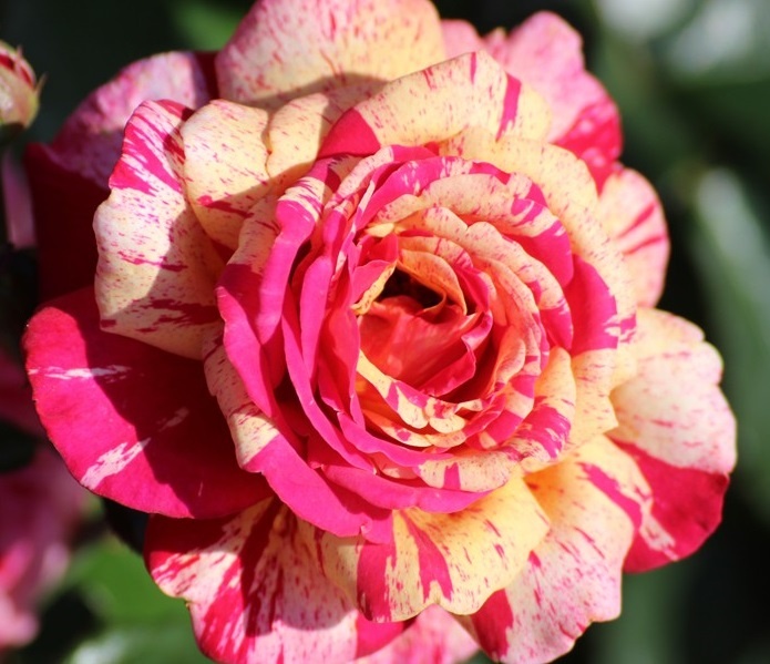• Flori mari, bicolore, cu petale roșii și crem.